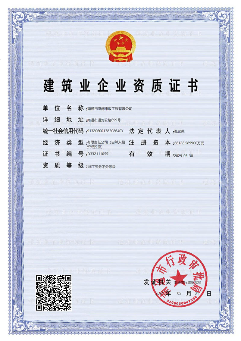 建筑業(yè)企業(yè)資質(zhì)證書(市政公用工程施工總承包壹級)