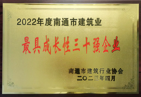2022年度南通市建筑業(yè)最具成長(zhǎng)性三十強(qiáng)企業(yè)
